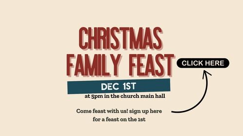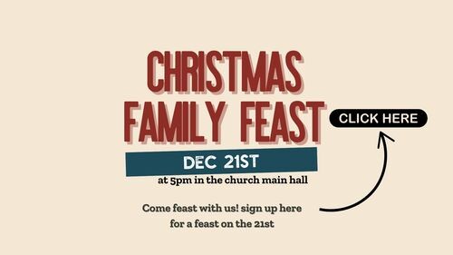 Bring some food that reminds you of Christmas from a culture that has been significant in your life and add it to the buffet table. Bring a drink to share. Offer to help set up or clean up. Here's the idea - not a restaurant, it's a family feast... We're going to share our food, talk, get to know each other, listen to stories, enjoy each other. Build our community and welcome friends in. Enjoy a glimpse of Heaven.