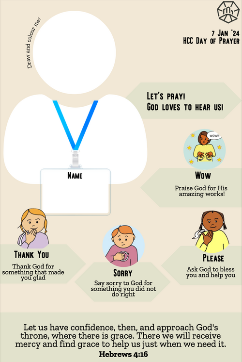 Prayer and activity card for kids 3 and above.
